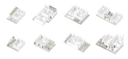 The project inhabits two Manhattan blocks between 40th to 42nd streets and 8th to 9th avenues; currently occupied by Port Authority. The proposal examines new models of domestic life and public life.
